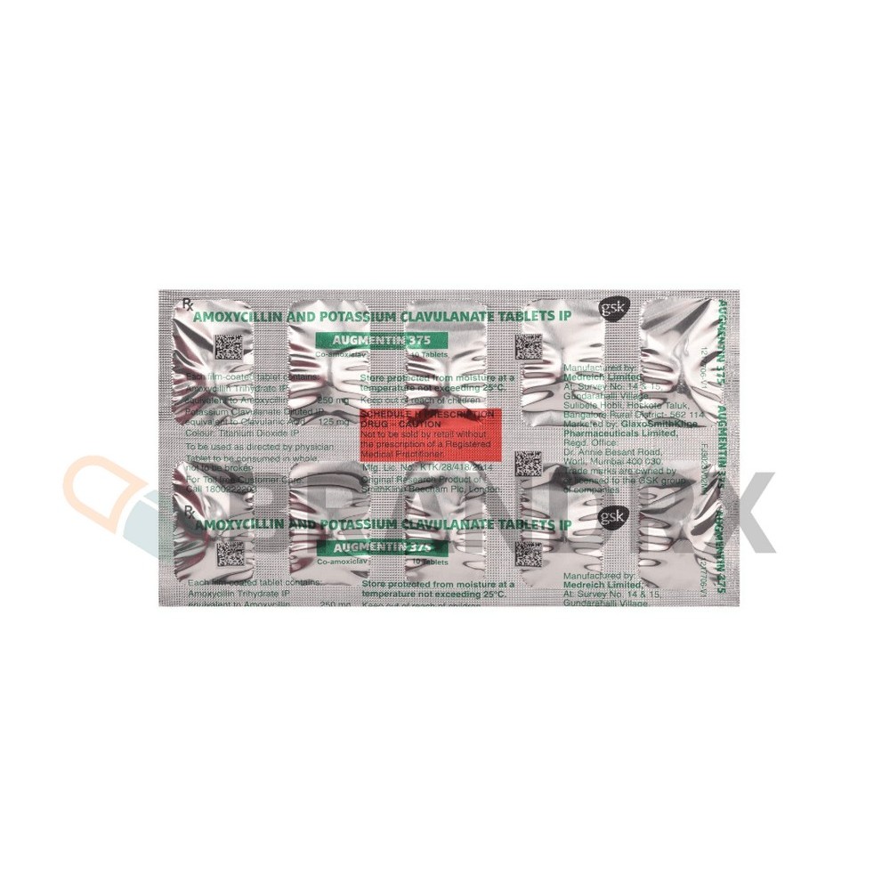 | Dávkování (lékařské) | Obvykle 250 mg až 500 mg každých 8 hodin nebo 500 mg až 875 mg každých 12 hodin, v závislosti na závažnosti a typu infekce. |
